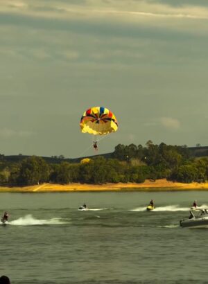 No campo esportivo e cultural, o evento trouxe integração e espetáculo. As apresentações incluíram manobras radicais de jet ski, saltos, exibições de flyboard e sobrevoos de paramotor, que empolgaram os presentes. Já na parte musical, a diversidade e a energia marcaram a programação, com destaque para a Batucada Maluca e a dupla João Carlos & Bruno, que encerraram o festival com chave de ouro.