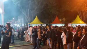 A Batucada Tambanauê comandou um dos principais destaques da noite, conduzindo o público em um cortejo vibrante da Praça do Galo até a Avenida Oswaldo Cruz. O trajeto se transformou em um verdadeiro desfile de música, cores e energia carnavalesca, envolvendo moradores e turistas.