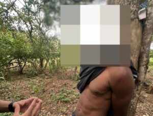 Durante o rastreamento, a equipe policial se deslocou até a zona rural da localidade, onde conseguiu localizar o suspeito. Ele foi abordado e submetido à busca pessoal.