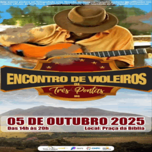 Já no domingo, 5 de outubro, das 14h às 20h, a Praça da Bíblia recebe mais uma edição do Encontro de Violeiros de Três Pontas. O evento é dedicado à valorização da música de raiz, reunindo artistas locais e regionais em uma tarde de cultura e convivência comunitária.