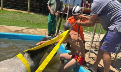 O Corpo de Bombeiros Militar de Minas Gerais realizou, na manhã desta quarta-feira (26), o resgate de uma égua que caiu dentro de uma piscina em...