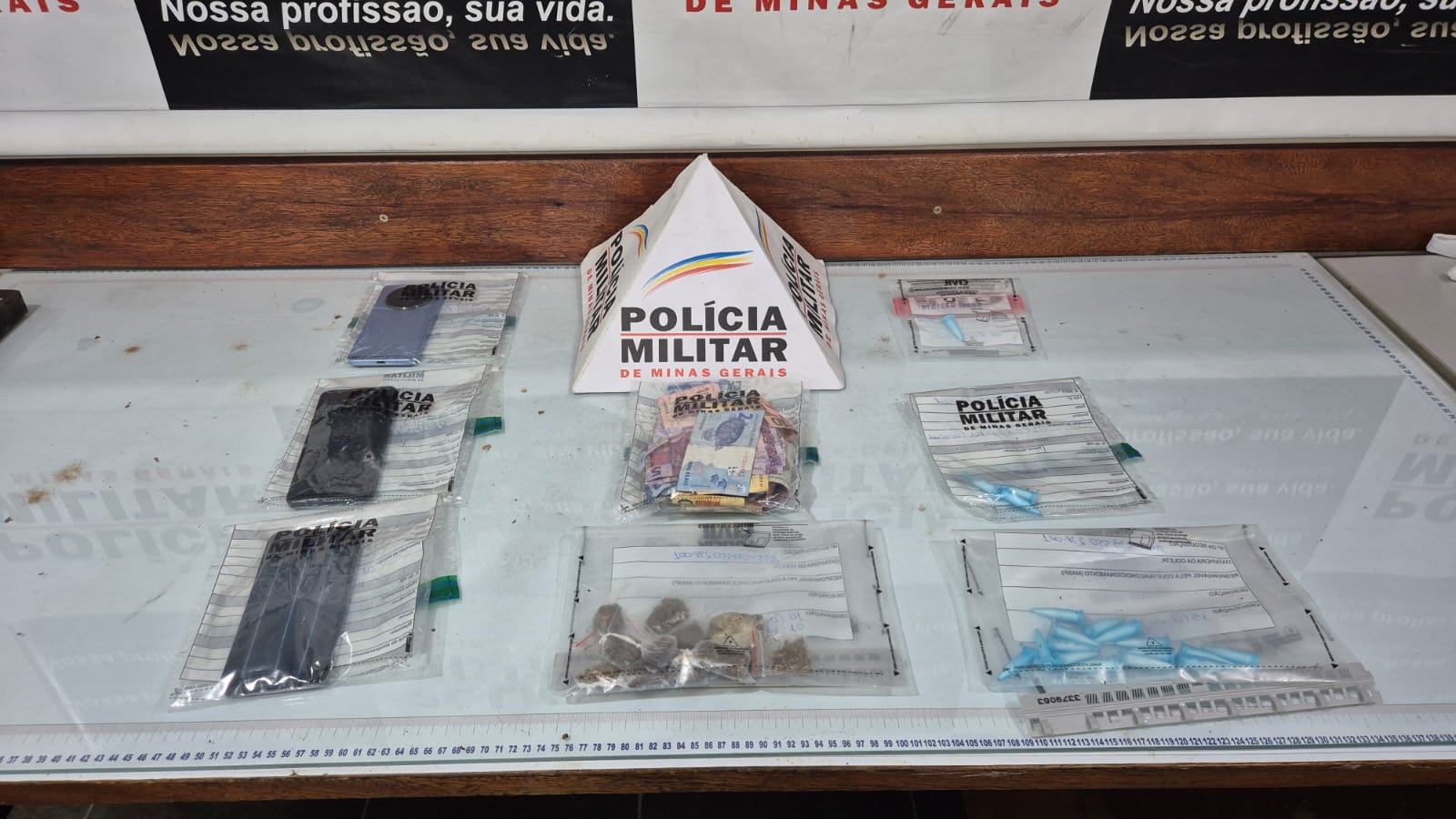 De acordo com a PM, as equipes se deslocaram até o local denunciado e realizaram a abordagem de um indivíduo já conhecido no meio policial pela prática de tráfico de drogas. Durante as buscas no imóvel utilizado para a atividade criminosa, os militares encontraram diversas porções de entorpecentes e materiais relacionados à comercialização.