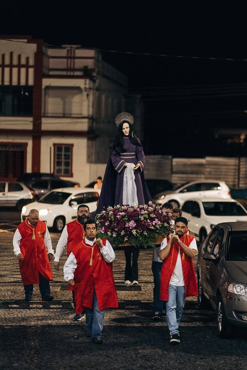 Já à noite, às 19h, a Praça São Cristóvão recebe o Sermão do Descimento da Cruz, seguido por uma das manifestações mais marcantes: a Procissão do Silêncio, que percorre as ruas até a Matriz, onde acontece o tradicional beijo na imagem do Senhor morto.
