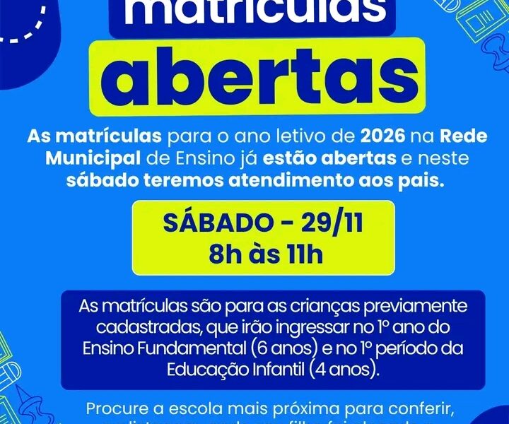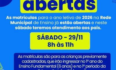 ✅ Somente neste sábado, 29 de novembro, as escolas estarão abertas das 8h às 11h, especialmente para atender os pais que trabalham e não conseguem comparecer...